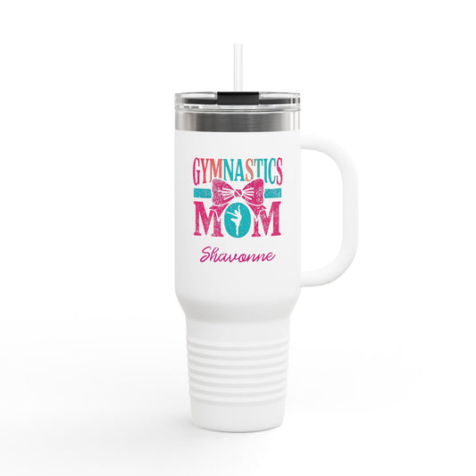 Gymnastics Mom 40oz Insulated Travel Mug — Personalized (Gymnast Name) Tumbler with Straw