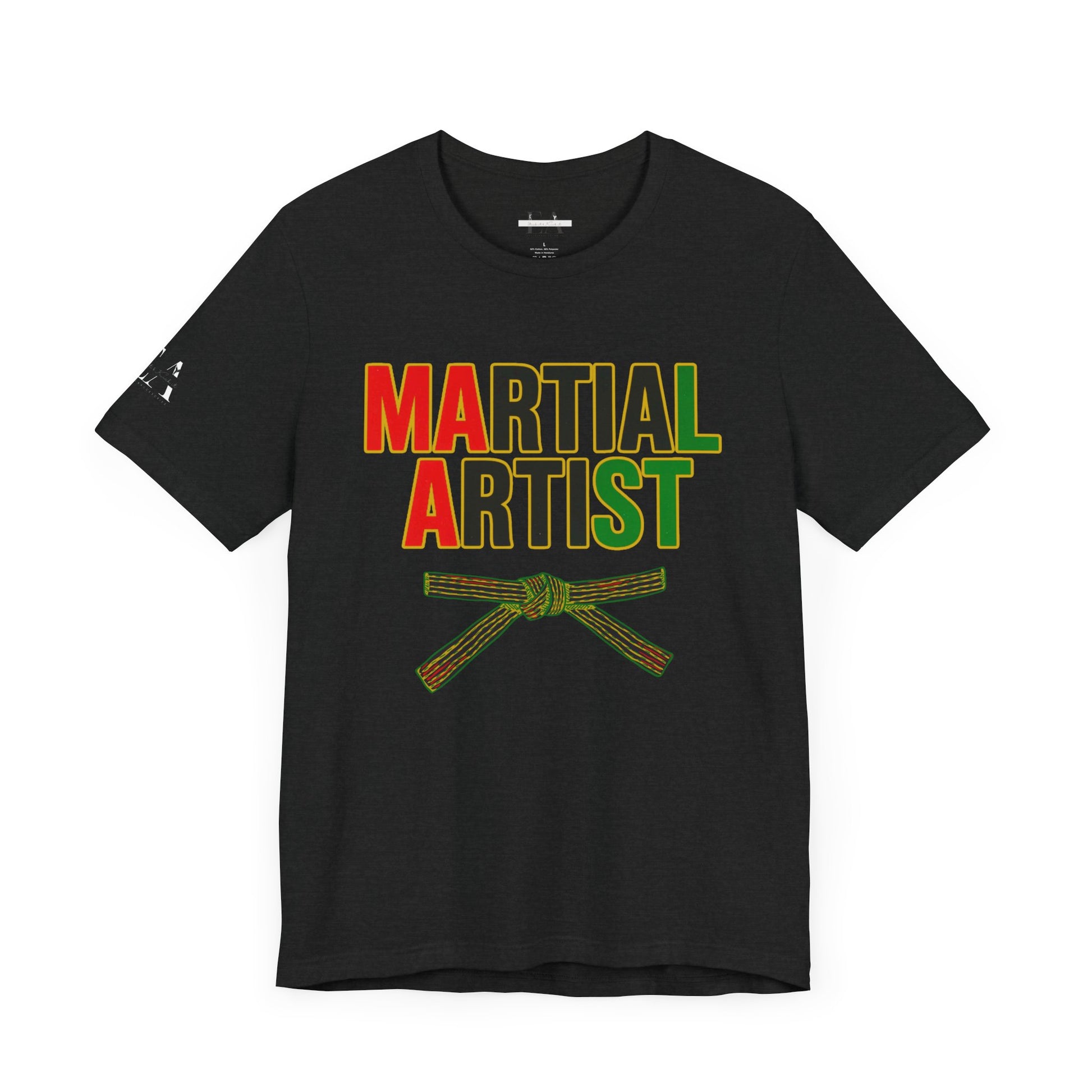 Celebrate being a Martial Artist with this striking black Bella Canvas 3001 t-shirt, designed especially for martial artists. Adorned with vibrant Pan-African Flag colors, it honors heritage while inspiring pride. Known for its exceptional Airlume combed and ring-spun cotton, the shirt offers unmatched softness and breathability. Plus, its modern, tailored fit ensuresing you enjoy both comfort and freedom of movement during routines and festivities.