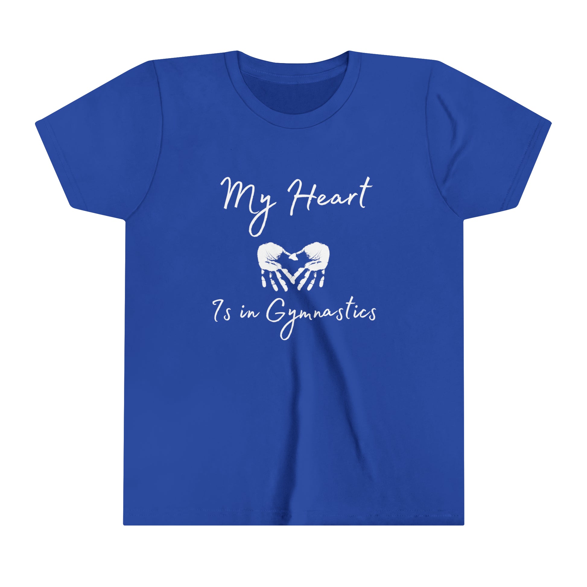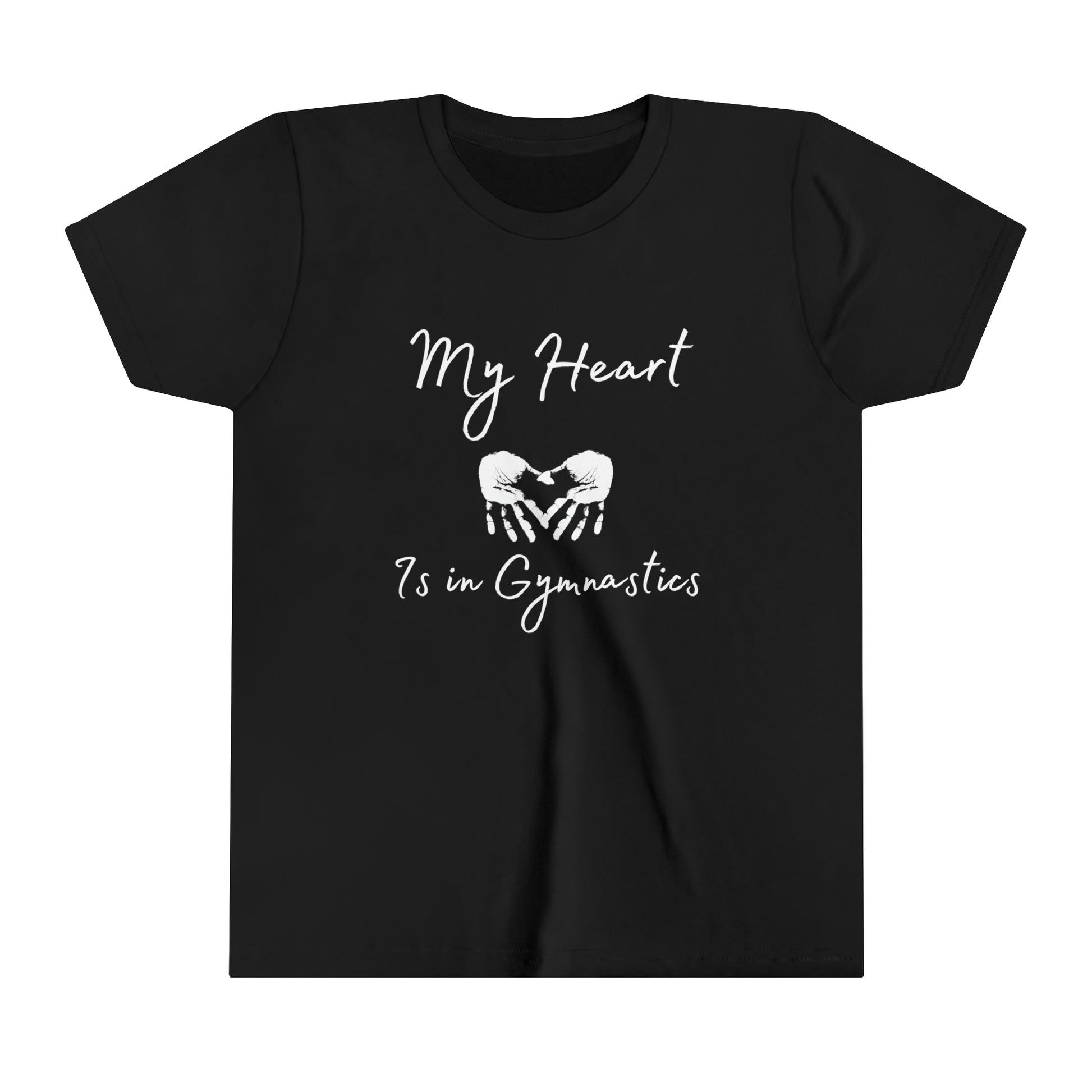 You spend hours at practice, you spend even more time at home, you randomly flip or do a handstand wherever you go. Let's face it, this sport is in your heart. Might as well show that off. This classic youth short sleeve tee is lightweight side-seamed shirt maximizes comfort all day long. The ring-spun cotton makes this kids short sleeve tee perfect for displaying custom artwork. Side seams keep the garment's shape. The shoulders have tape for longer fitting. The collar is extra elastic due to ribbed knitting.